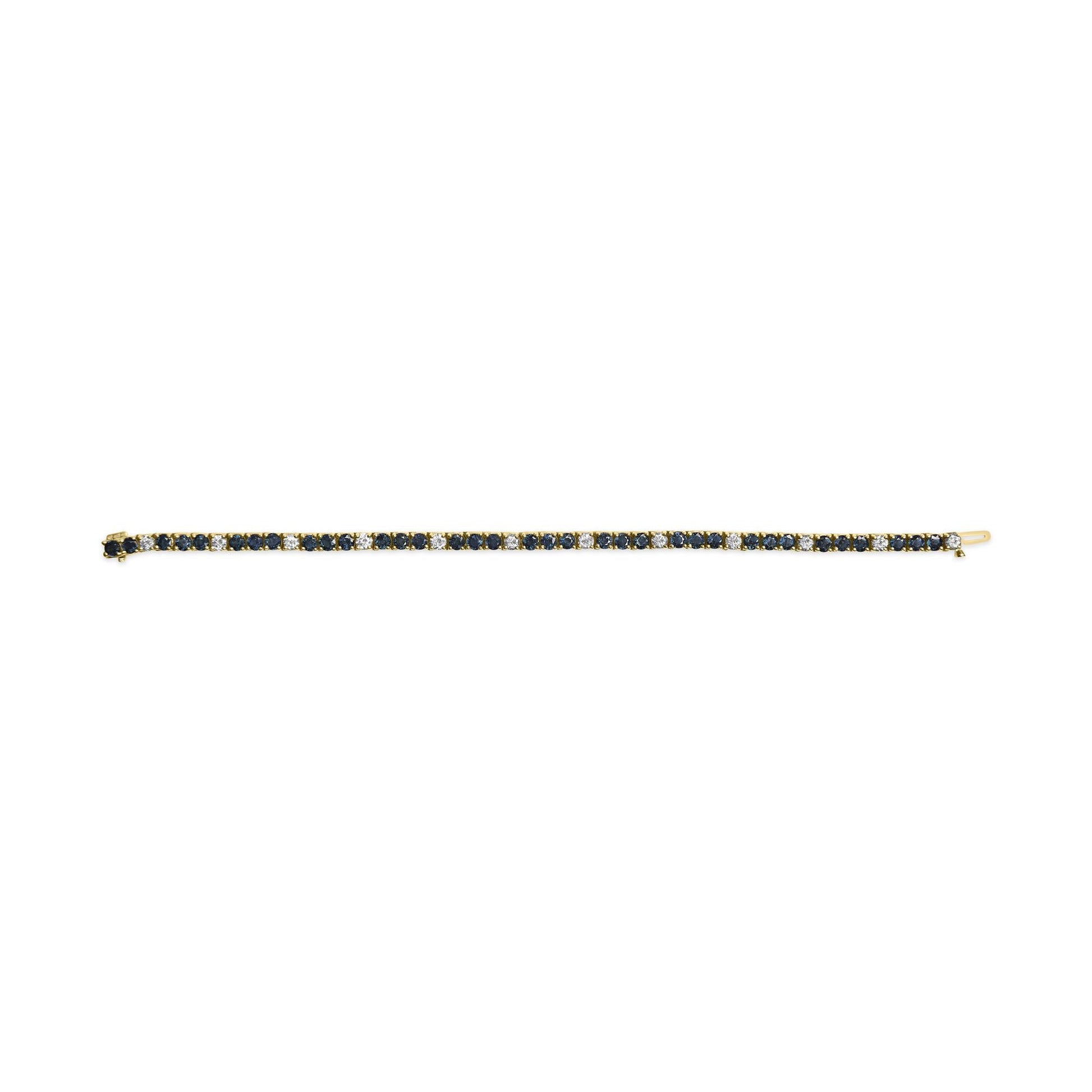 18K Yellow Gold Alternating 1 1/5 Cttw Diamond Blue Sapphire Tennis Bracelet 7