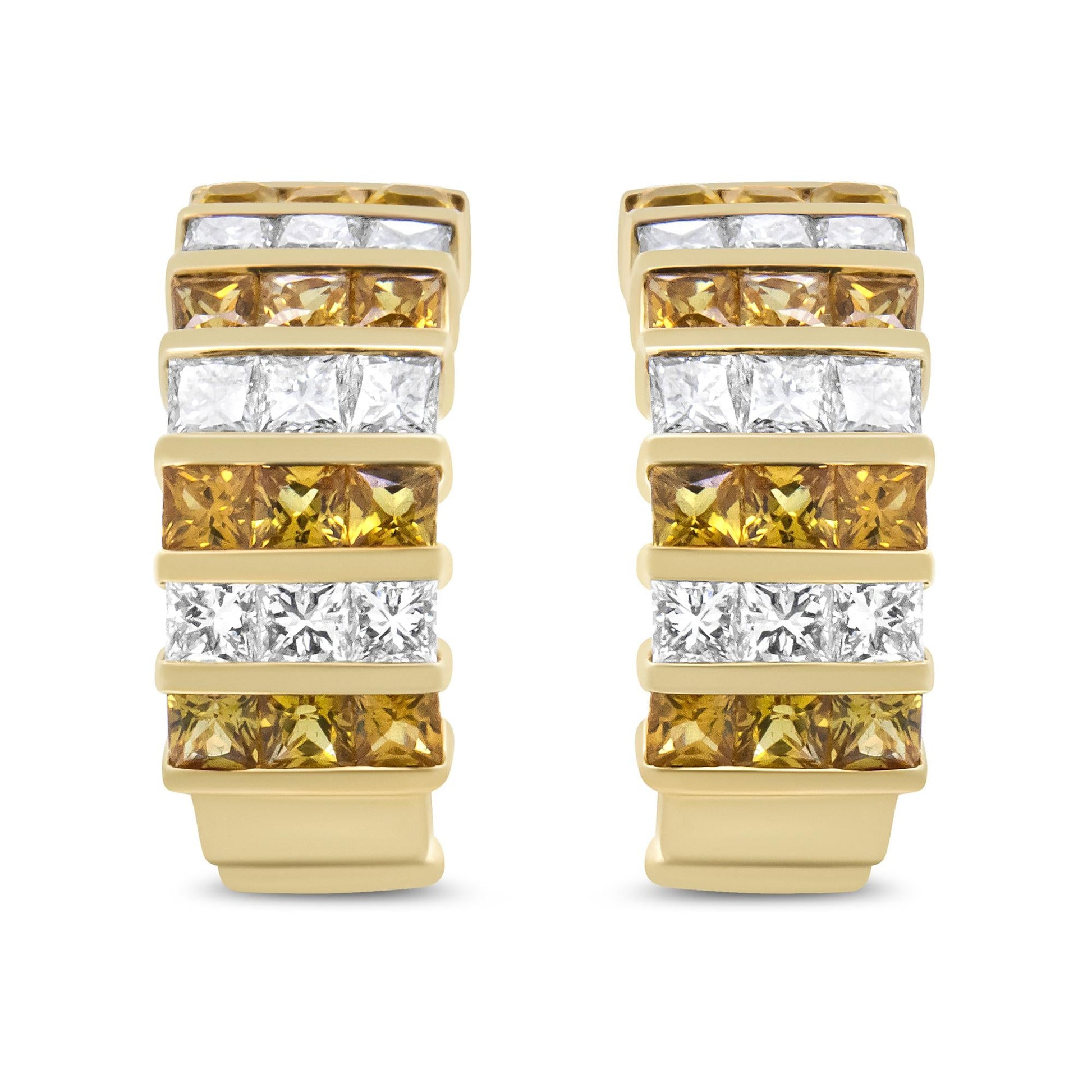18KYellow Gold 1 3/4 Cttw Princess Diamond Yellow Sapphire Huggie Hoop Earrings